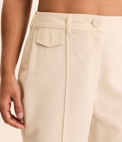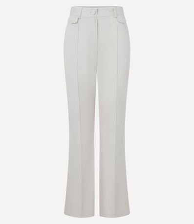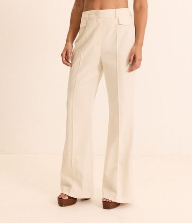 Ref: Calça flare em alfaiataria, estilo Boho com bolsinhos e friso frontal.