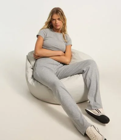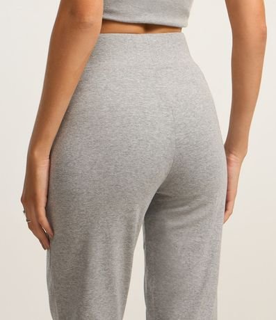 Calça feminina de modelo flare, confeccionada em cotton de material mais sustentável, com cós largo e básica.