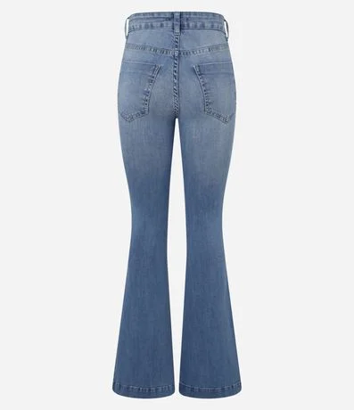 Ref: Calça flare com cintura alta, confeccionada em jeans e com bolsos frente e costas.