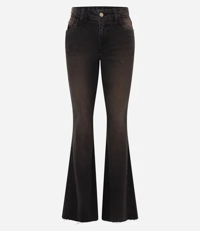 Ref: Calça flare confeccionada em algodão certificado BCI, com cintura média e abertura ampla que alonga a silhueta. Possui lavagem sobretinta marcada, barra desfiada para acabamento despojado, cinco bolsos funcionais e fechamento por zíper e botão.