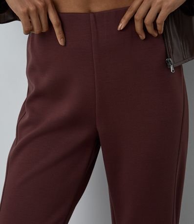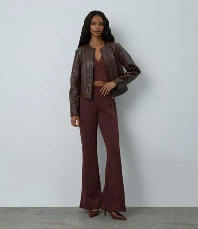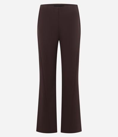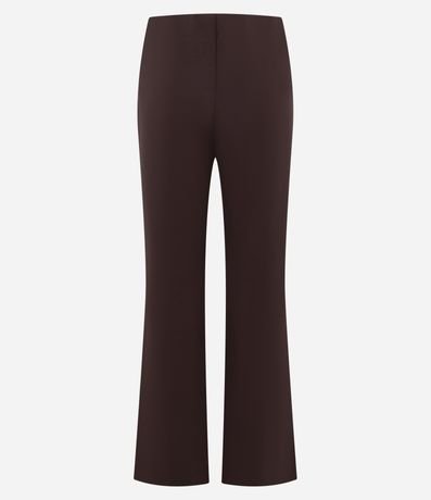 Calça flare confeccionada em ponto roma com viscose certificada mais sustentável, possui cós embutido e não possui estampa.
