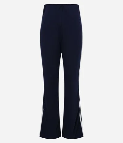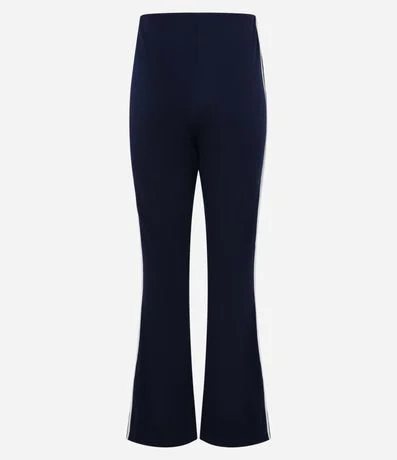 Ref: Calça flare com cós elástico, confeccionada em ponto roma e com friso contrastante na lateral.