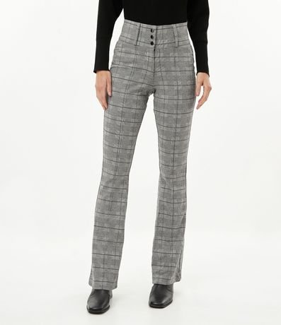 Ref: Calça flare em ponto roma, com cós largo, fechamento com zíper e botões. O modelo com padronagem xadrez príncipe de gales, oferece muita elegância e charme ao seu visual. A peça ajusta-se perfeitamente ao corpo, além de combinar facilmente e promover looks inspiradores para vestir em diversas ocasiões.