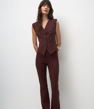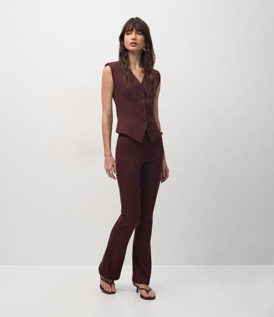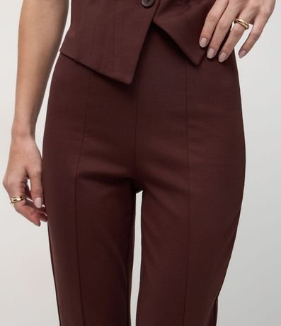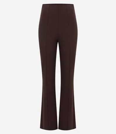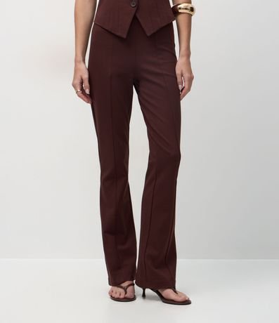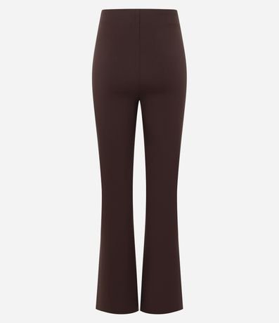 Calça flare feminina, confeccionada em moletom, sem fechamentos no cós. A peça conta com recortes ao longo das pernas e uma superfície sem estampa.