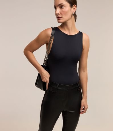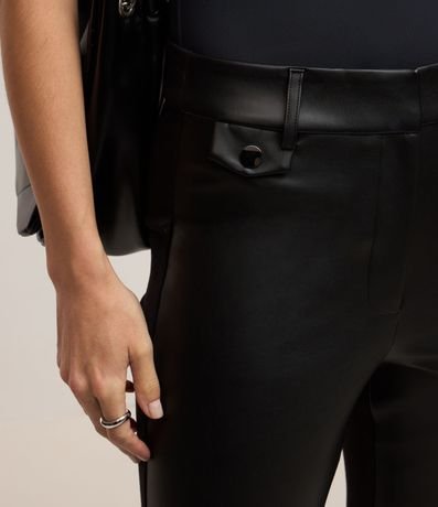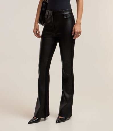 Ref: Calça flare feminina, confeccionada em PU e ponto roma, com passantes no cós e bolsinhos.