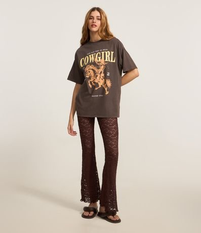 Ref: Calça super estilosa confeccionada em renda floral e com fit flare.
