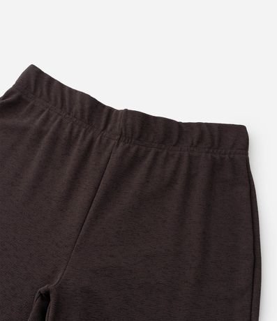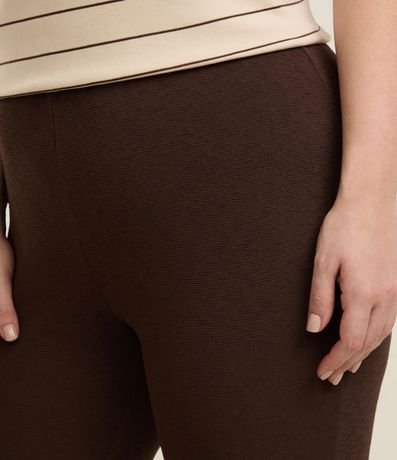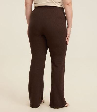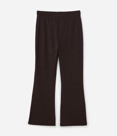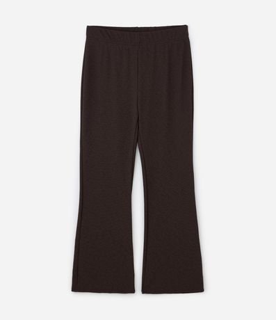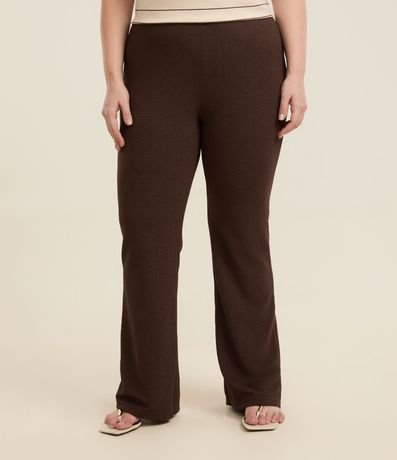 Calça feminina de modelo flare, confeccionada em ribana de textura canelada.
