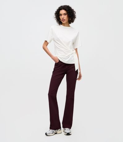 Calça Flare em Sarja com Cintura Média