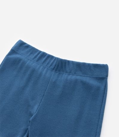 Calça infantil de modelo flare, confeccionada em malha ribana de algodão, com cós elástico e sem estampa. Possui textura caneladinha.