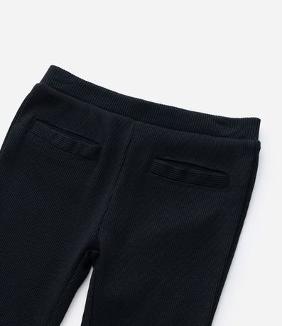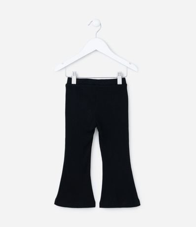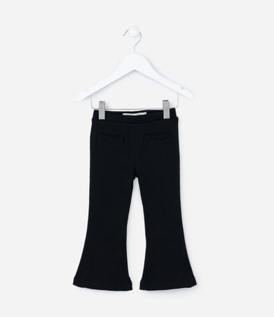 Ref: Calça infantil de modelo flare, confeccionada em algodão, com textura canelada, cós elástico e bolsos fake na parte traseira.
