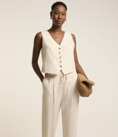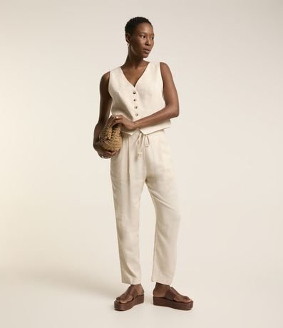 Calça Fluída em Viscolinho com Cós Elástico e Amarração