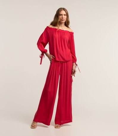 Ref: Calça fluida feminina, confeccionada em viscose, com amarração no cós e bolso cargo lateral.