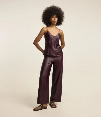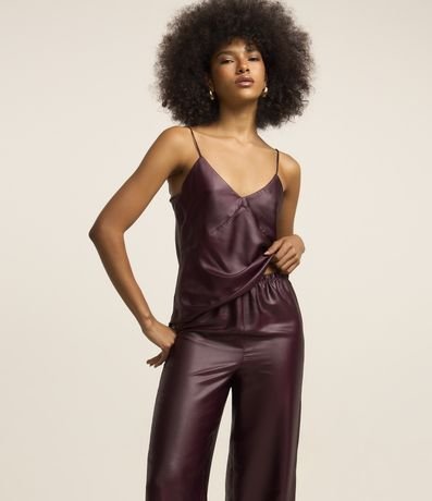 Ref: Calça fluida com elástico no cós. Confeccionada em cetim.
