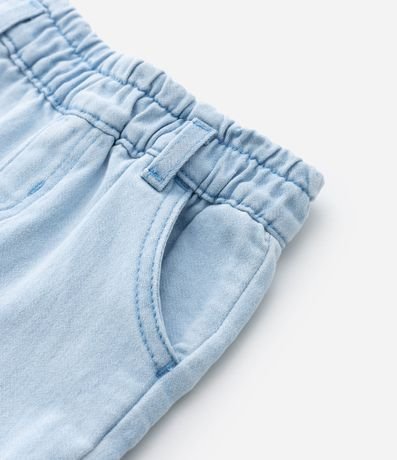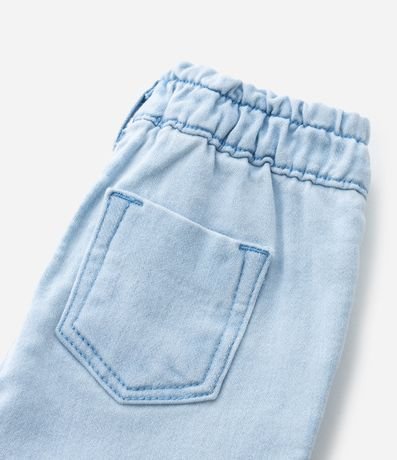 Ref: Calça infantil confeccionada em jeans mais sustentável, no modelo clochard. Possui cós elástico, com passantes, lenço estampado, bolsos e barra dobrada.