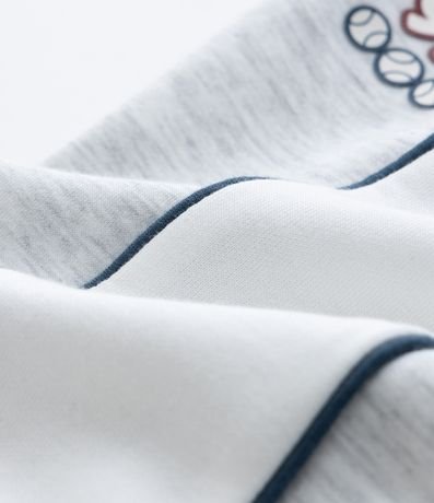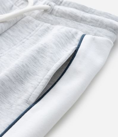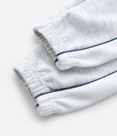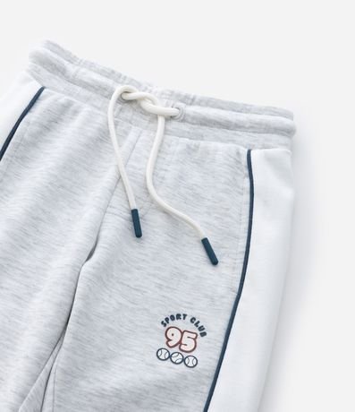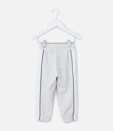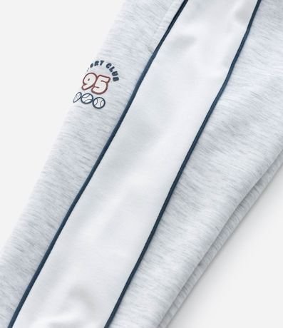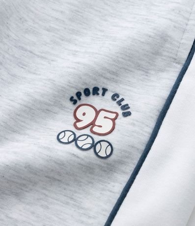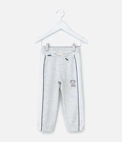 Ref: Calça infantil confeccionada em viscose mais sustentável com boas práticas ambientais, no modelo college. Possui cós elástico, com cordão, listras laterais, estampa localizada e barra ajustada.