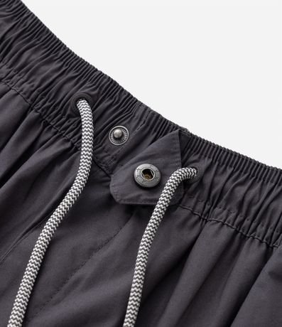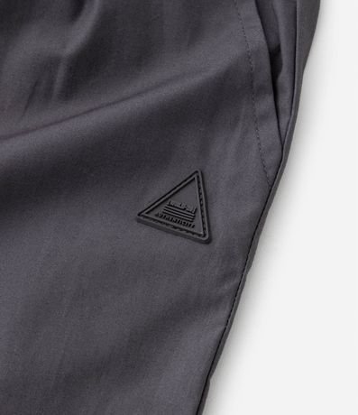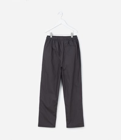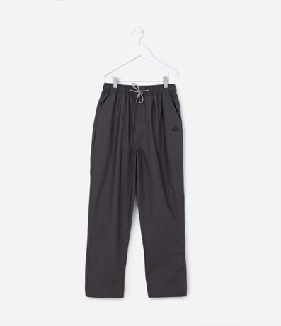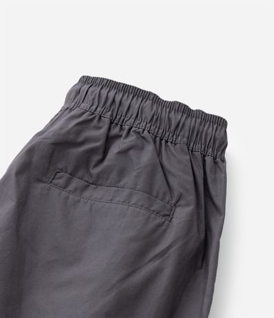 Ref: Calça infantil confeccionada em paper touch com elástico, amarração e fechamento por pressão na cintura mais bolsos frontais, etiqueta triangular emborrachada aplicada próximo ao bolso e outro bolso traseiro.