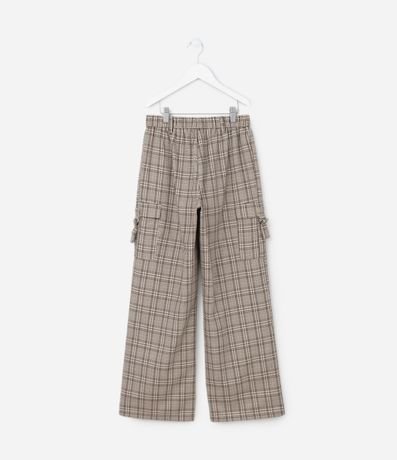 Ref: Calça infantil com corte alfaiatado, cós elástico com aplicação de botão, bolsinhos laterais cargo que dão charme a peça, além de possuir estampa xadrez.