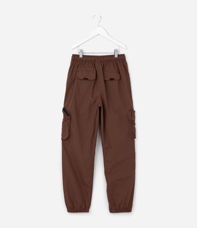 Ref: Calça infantil confeccionada em algodão. Possui cós elástico, com cordão, sem estampa e com bolsos cargos.