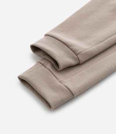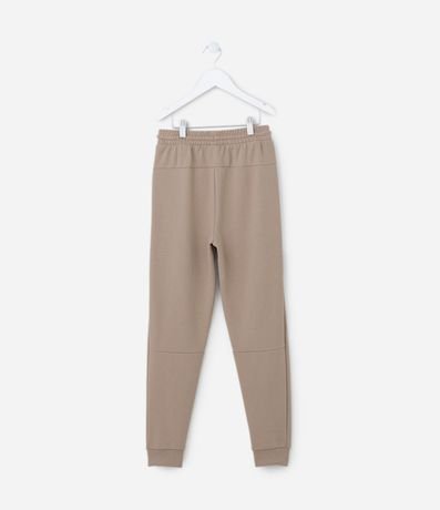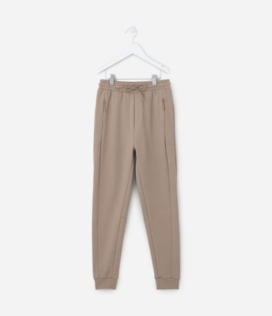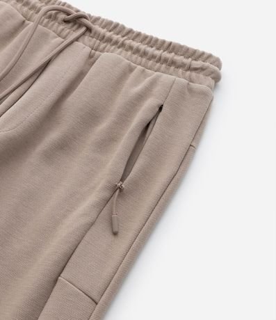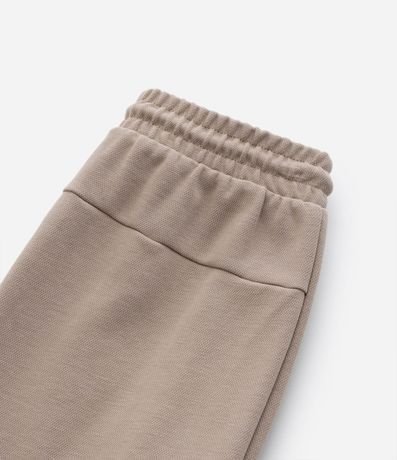 Ref: Calça infantil confeccionada em piquet, com cós regulável, bolsinhos com zíper e e recortes.