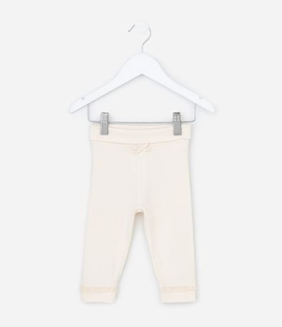 Ref: Calça infantil, em algodão, cós virado, lacinho aplicado e rendinha no punho.