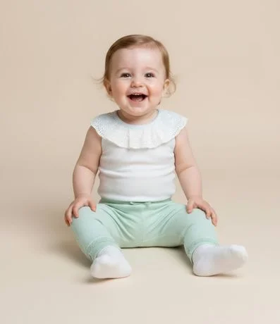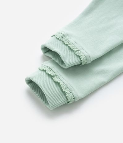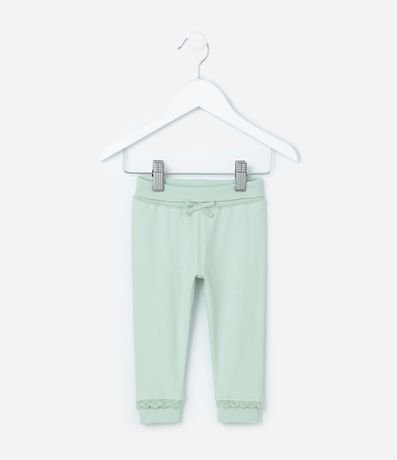 Ref: Calça infantil, em algodão, cós virado, lacinho aplicado e rendinha no punho.