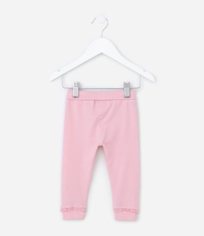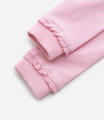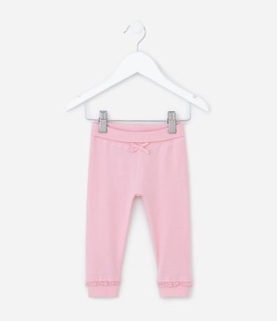 Ref: Calça infantil, em algodão, cós virado, lacinho aplicado e rendinha no punho.