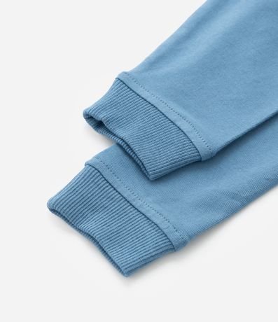 Calça em cotton, com cós virado, punhos ajustado com textura canelada e sem estampa.