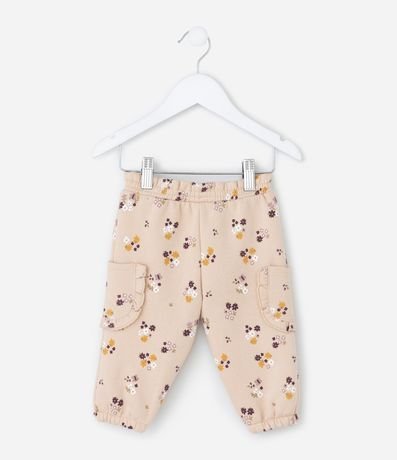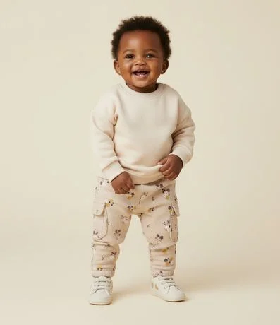 Ref: Calça infantil confeccionada em moletom com felpa, oferecendo toque macio e conforto térmico. Possui cós elástico, punhos ajustados e bolsos laterais. Estampa floral fullprint adiciona visual delicado e acolhedor.