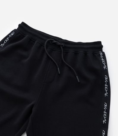 Calça infantil confeccionada em malha dupla, com elástico e amarração no cós, além de recortes noe joelhos e bolso atrás. A roupa tem lettering em japonês nas laterais e o loogtipo "Playstation" no joelho.Este produto possui viscose certificada em sua composição, sendo ambientalmente mais responsável.