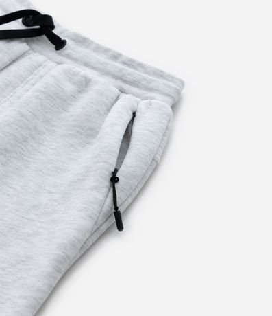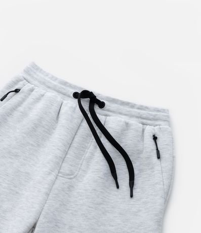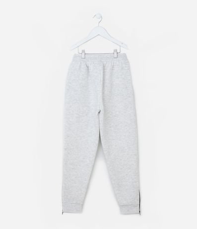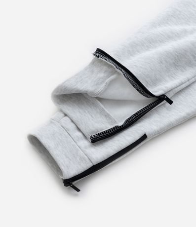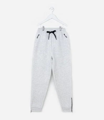 Ref: Calça infantil confeccionada em moletom sem forro, com cós com amarração, bolsos com zíper, recortes nas pernas e fechamento por zíper na barra.