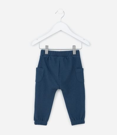 Ref: Calça infantil com textura waffle, cós com cordão ajustável contrastante, bolsos com etiqueta aplicada e barra ajustada.