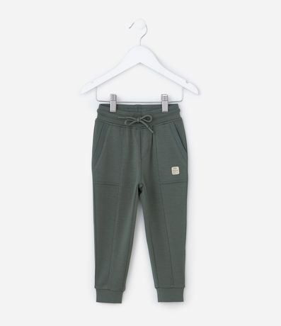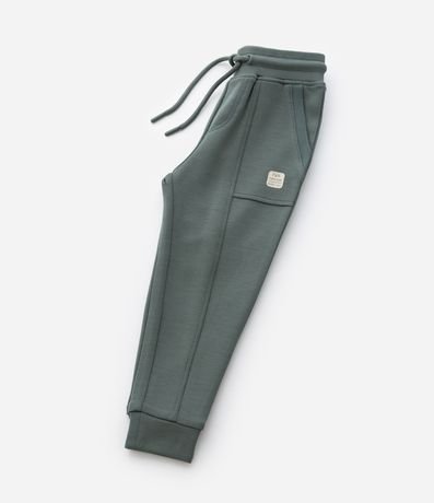 Calça infantil confeccionada em malha dupla de modal, com amarração no cós, bolsos e recortes e detalhe de tag com lettering Fun Forever.