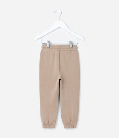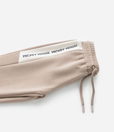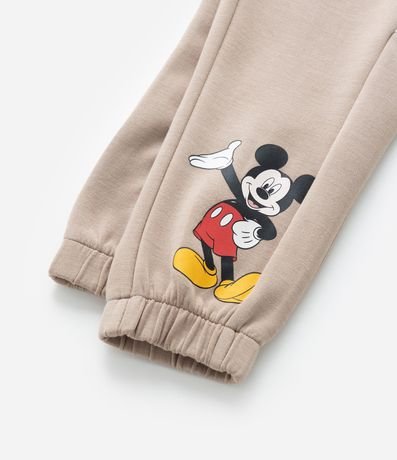 Ref: Calça infantil confeccionada em modal, de cós com amarração, recortes frontais com lettering, barra ajustada e estampa do Mickey.