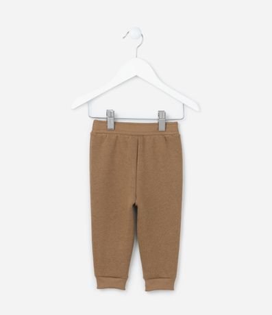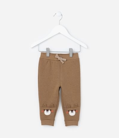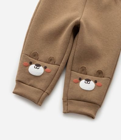 Ref: Calça infantil confeccionada em moletom com forro quentinho, cós elástico, amarração e bordado de ursinho na barra.