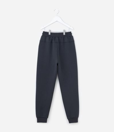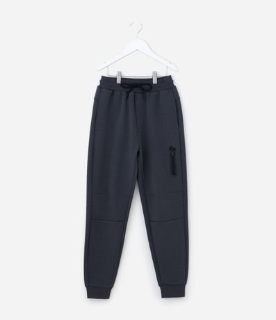 Ref: Calça infantil confeccionada em moletom mais sustentável. Possui cós elástico, com cordão ajustável, bolso com zíper, recortes, sem estampa e com a barra ajustada.
