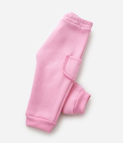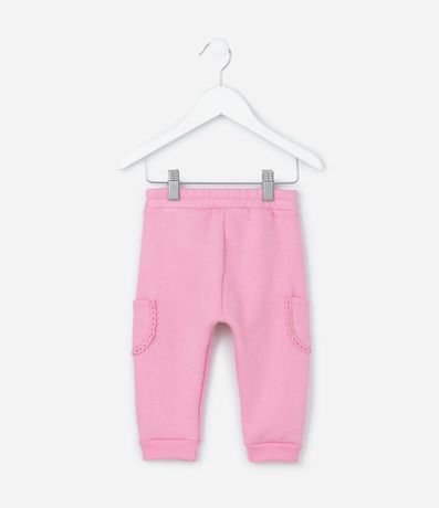 Ref: Calça de moletom infantil para bebês, com forro quentinho e cós elástico. Sem estampa, possui punhos ajustados e detalhe de bolsinho lateral com rendinha crochetada.