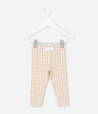 Calça Infantil em Ribana com Estampa Vichy e Laço – Tam RN a 18 Meses