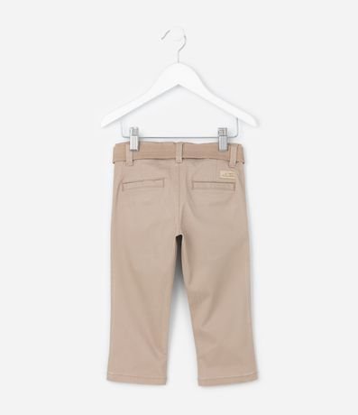 Ref: Calça infantil confeccionada em sarja mais sustentável através de boas práticas ambientais. Possui cós com passante, cinto, fechamento tradicional e bolso faca.