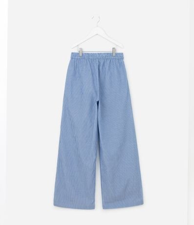 Ref: Calça infantil confeccionada em algodão certificado BCI e boas práticas ambientais. Possui cós elástico com cordão para ajuste, listras verticais e detalhes aplicados nas laterais. O modelo leve e fresco em tricoline garante visual moderno e confortável para compor looks casuais.