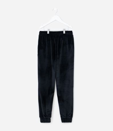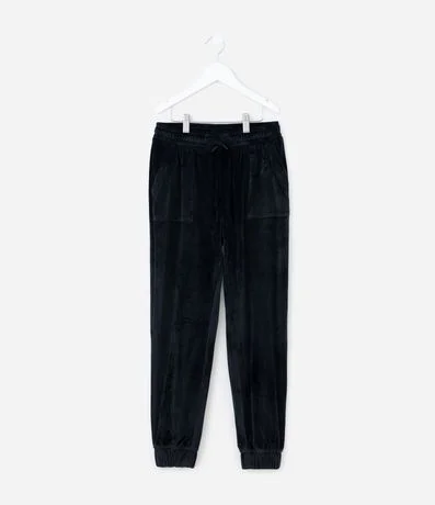 Calça infantil modelo jogger confeccionada em plush macio, com toque aveludado e caimento confortável. Possui cós elástico com cordão funcional para ajuste, bolsos frontais e punhos na barra, garantindo praticidade e liberdade de movimentos no dia a dia.