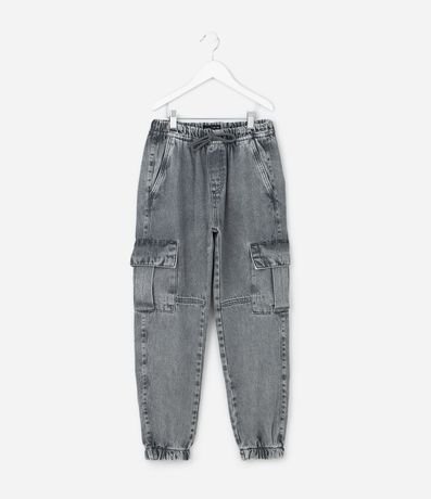 Calça Infantil Jogger em Jeans com Bolso Cargo – Tam 7 a 16 Anos