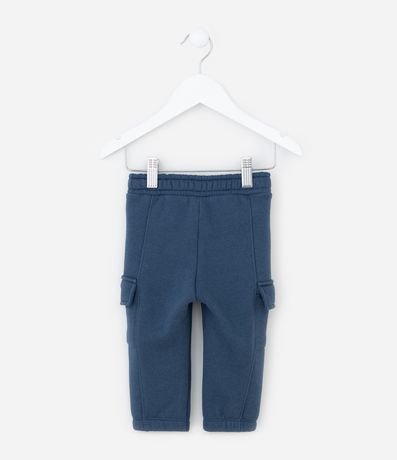 Ref: Calça infantil confeccionado em moletom com forro quentinho, cós com amarração e bolsos cargo laterais com lapela.