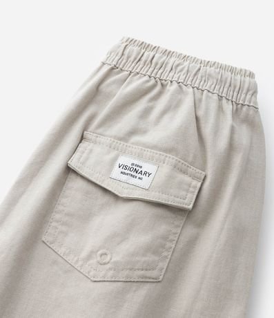 Calça infantil confeccionada em tricoline mais sustentável, no modelo reto. Possui cós elástico, com cordão, bolsos e etiqueta aplicada.
