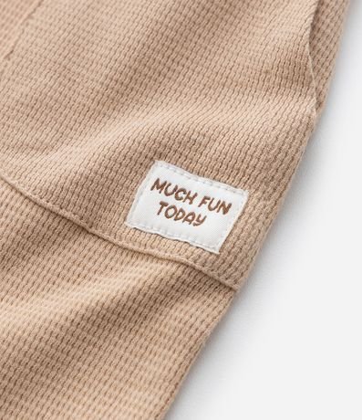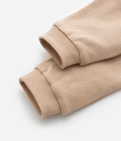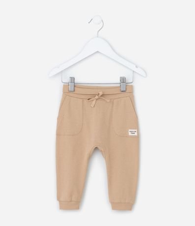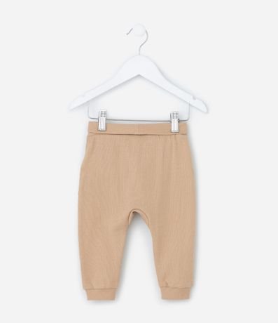 Ref: Calça infantil confeccionada em algodão de material mais sustentável, com cós dobrável e com amarração, bolsinhos e textura.