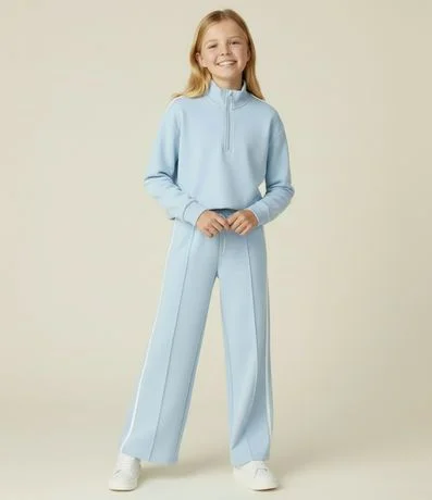 Ref: Calça infantil confeccionada em viscose mais sustentável, no modelo wide leg. Possui cós elástico, com cordão ajustável, listra latera e friso.