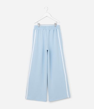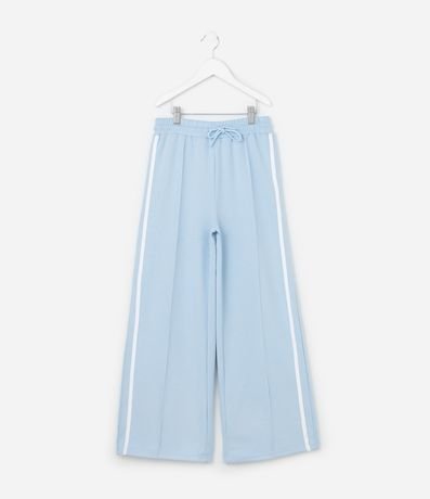 Ref: Calça infantil confeccionada em viscose mais sustentável, no modelo wide leg. Possui cós elástico, com cordão ajustável, listra latera e friso.