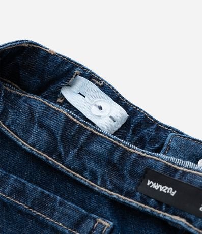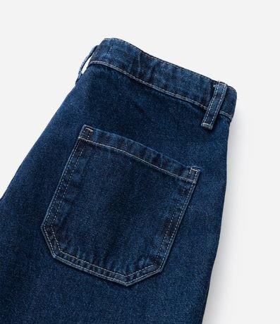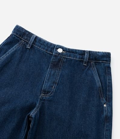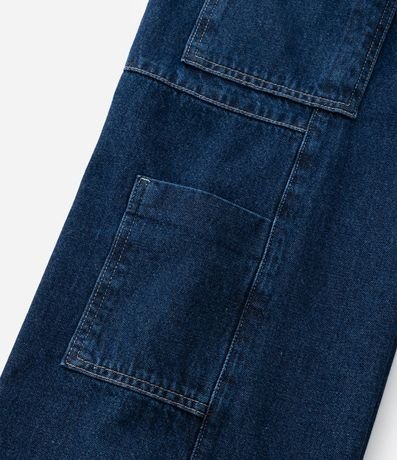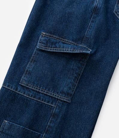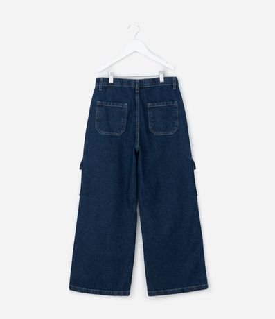 Ref: Calça infantil confeccionada em jeans de algodão certificado BCI, com modelagem wide leg e cós com regulagem interna. Possui quatro bolsos cargo com lapela, bolsos faca frontais, bolsos traseiros aplicados e fechamento por botão e zíper, oferecendo estrutura encorpada e resistente.
