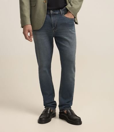 Ref: Calça jeans masculina, cós com passantes, bolsos e efeito lavagem.