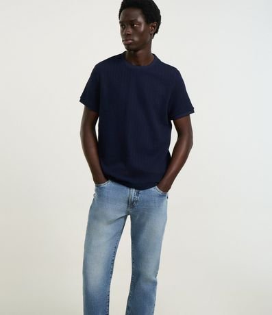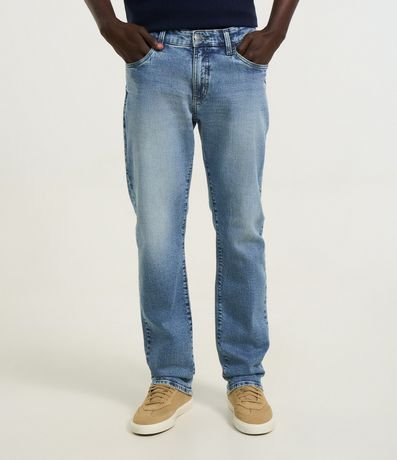 Ref: Calça masculina confeccionada em jeans mais sustentável, no modelo slim. Possui cós com passante, fechamento tradicional, com lavagem aparente e bolsos.