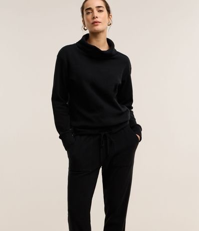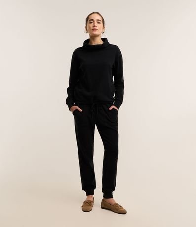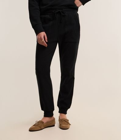 Ref: Calça jogger de cintura alta, confeccionado em moletinho, com elástico e amarração na cintura. Conta com amarração com ponteiras.